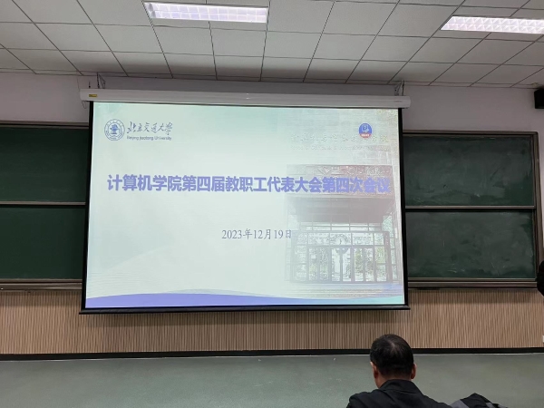 2023年12月19日下午,p站第四届教代会第四次会议在九教中102召开。会议由学院工会主席段春荣主持。