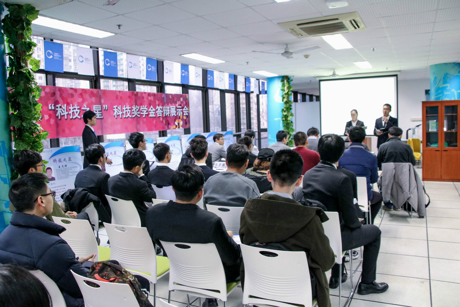 2017年12月8日下午,计算机与信息技术学院“科技之星”科技创新奖学金答辩展示会在逸夫楼二楼创客空间举行。p站副院长李浥东、党委副书记王浩业、团委书记原晓敏、工程系孙延涛、工程系刘铭、科学系万怀宇老师出席了此次答辩会并担任评委。p站前科协副主席王强,科技之星奖学金获得者张彦潇,国家奖学金获得者、科技之星奖学金获得者才子昕等三位同学担任学生评委。