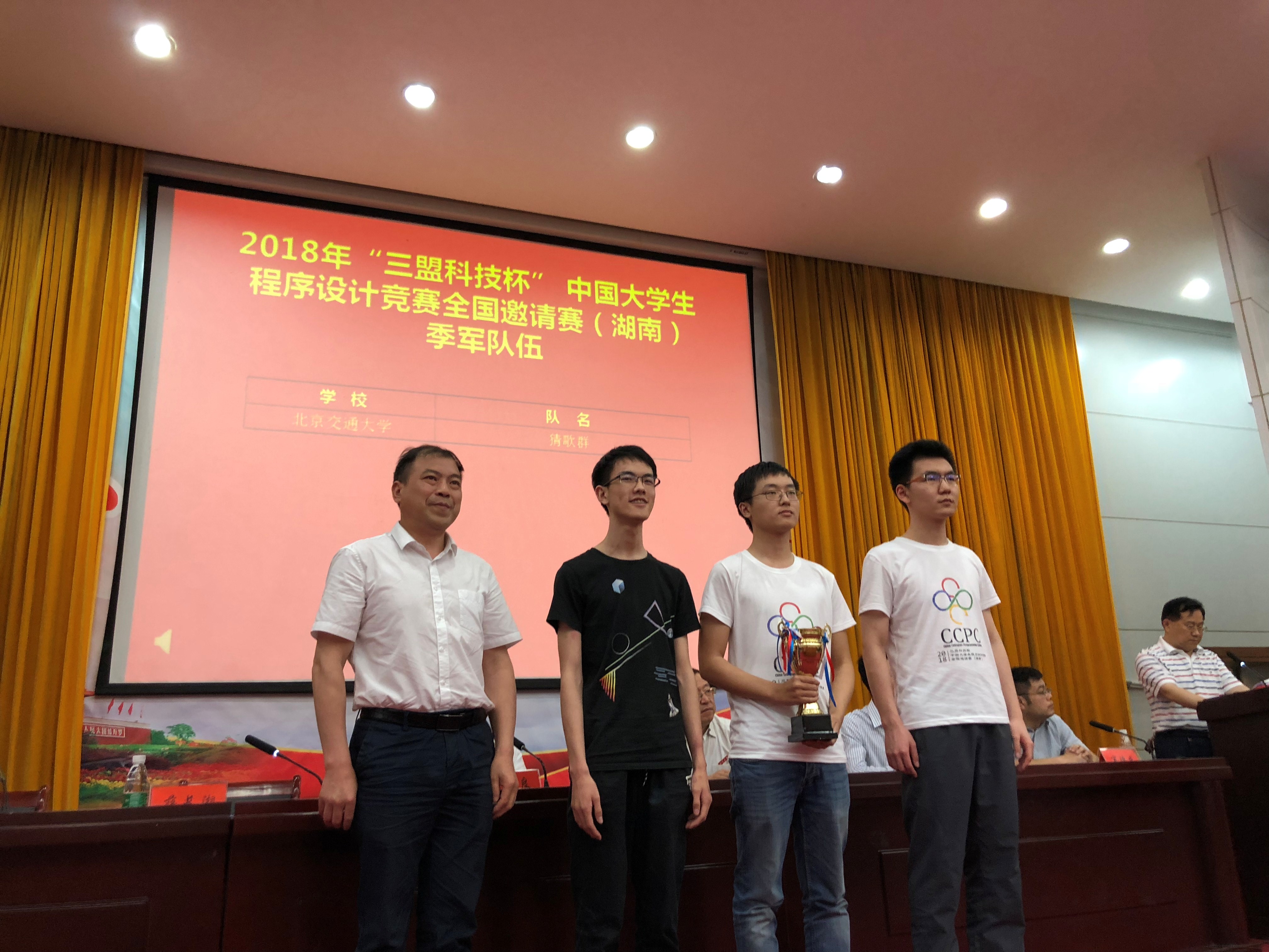 我校在第4届CCPC(中国大学生程序设计竞赛)全国邀请赛湘潭赛站中喜获季军