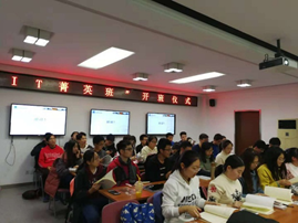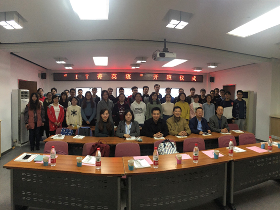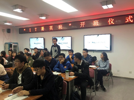 2018年10月26日19:00,“IT菁英班”开班仪式在九教北307B举行。中科院计算所教育处李琳处长、张平老师、王琪老师、p站副院长李清勇老师、党委副书记王浩业老师、刘真老师出席本次仪式。首届“IT菁英班”全体成员参加了本次仪式。