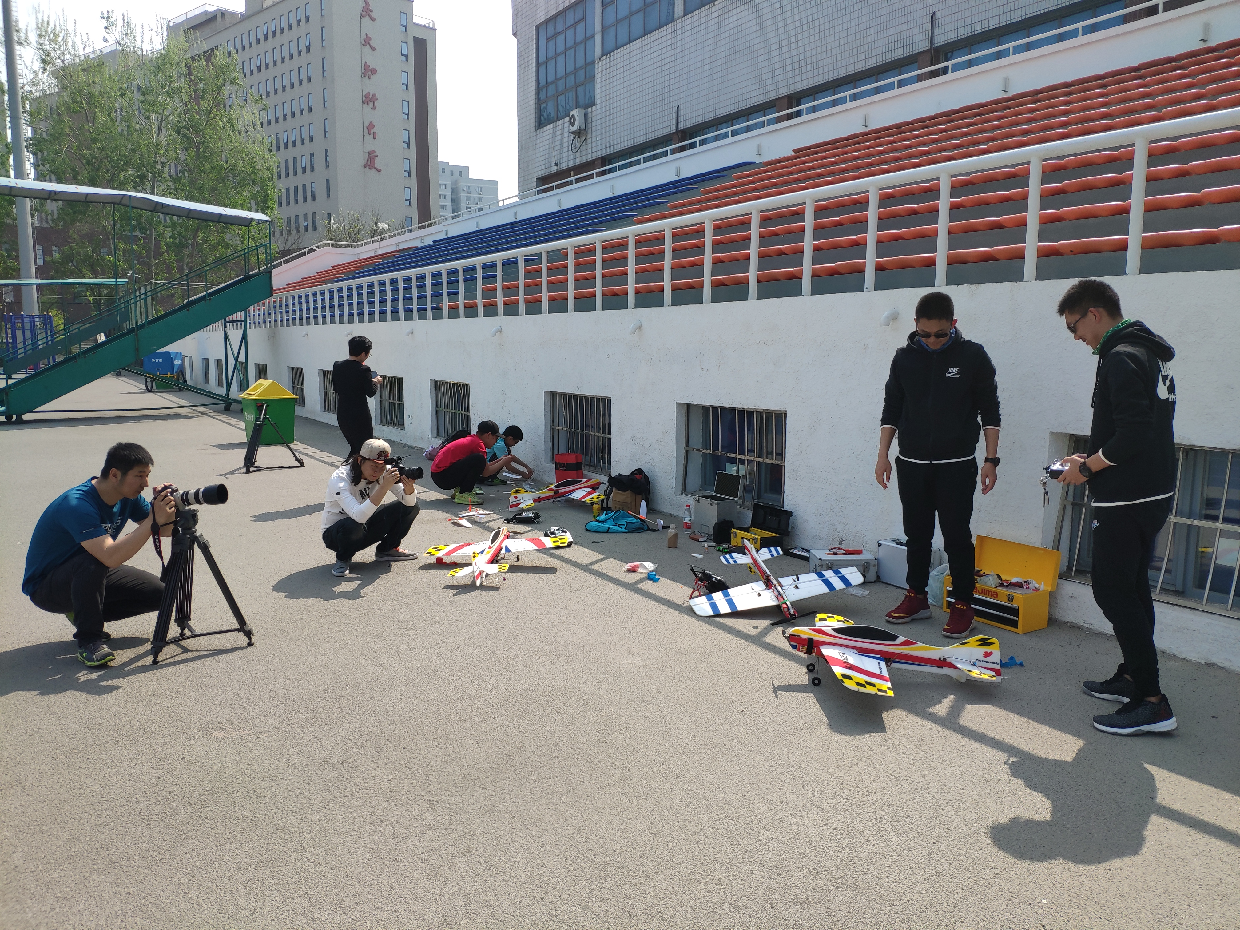 4月16日下午,p站 青年教师联谊会联合北京市模型运动协会、北京电视台在我校西操场共同举办了“航模进校园”活动。旨在传播、普及航模文化与技术,鼓励师生开展航模实践活动,促进增强航空航天领域的科研硬实力。我院青年教师和学生参加了本次活动。