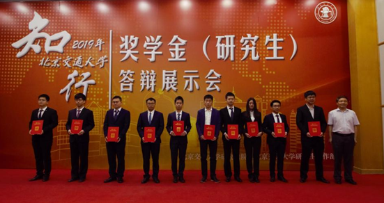 6月5日下午,北京交通大学2019年知行奖学金(研究生)答辩展示会在科学会堂举行。10名同学脱颖而出,获得2019年知行奖学金,该奖学金旨在加强拔尖创新人才培养,激励研究生勤奋学习、刻苦钻研、潜心学术、勇于创新,进一步提高研究生培养质量。其中,信息所博士生张幸幸同学获奖,校长王稼琼为其颁发了荣誉证书。