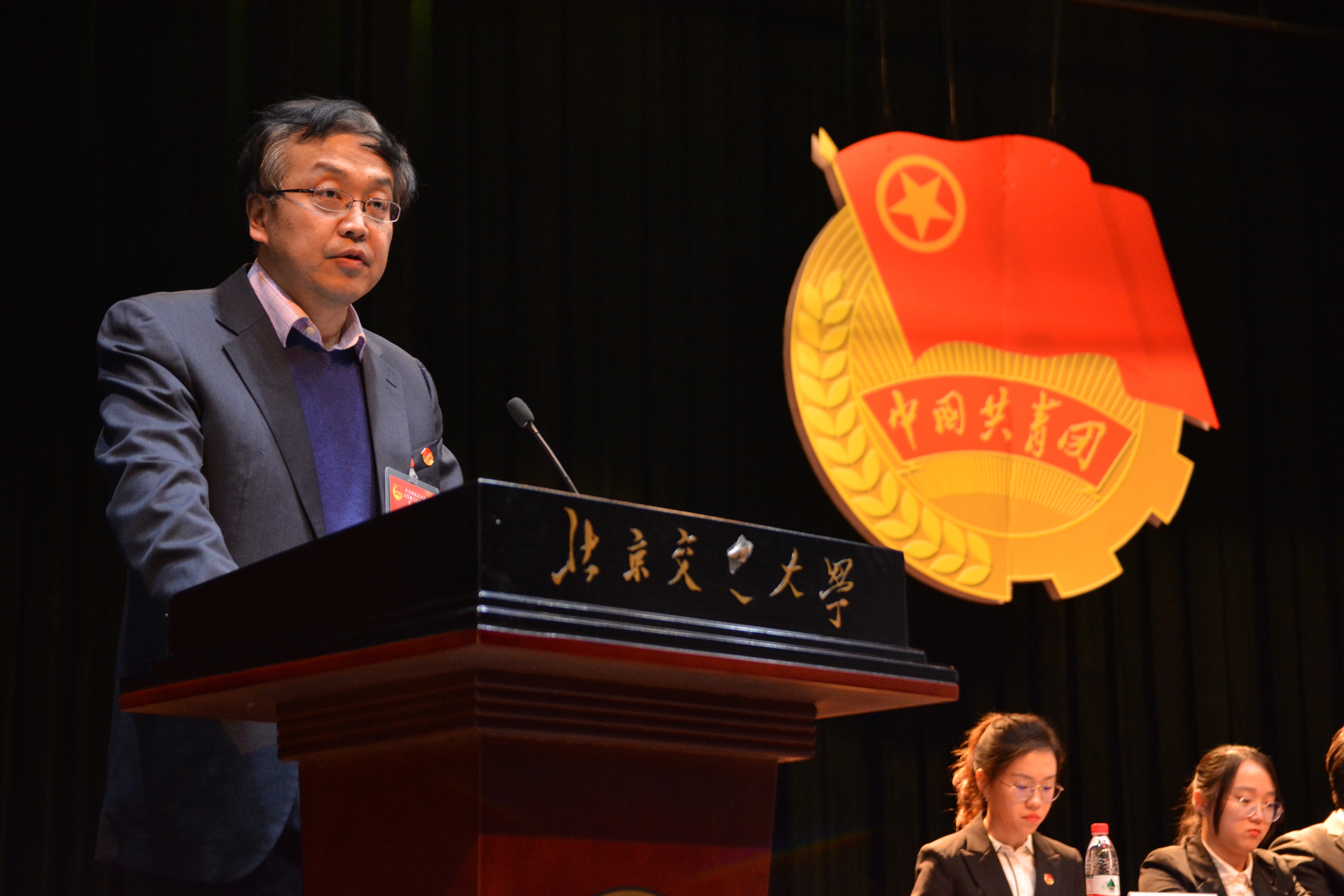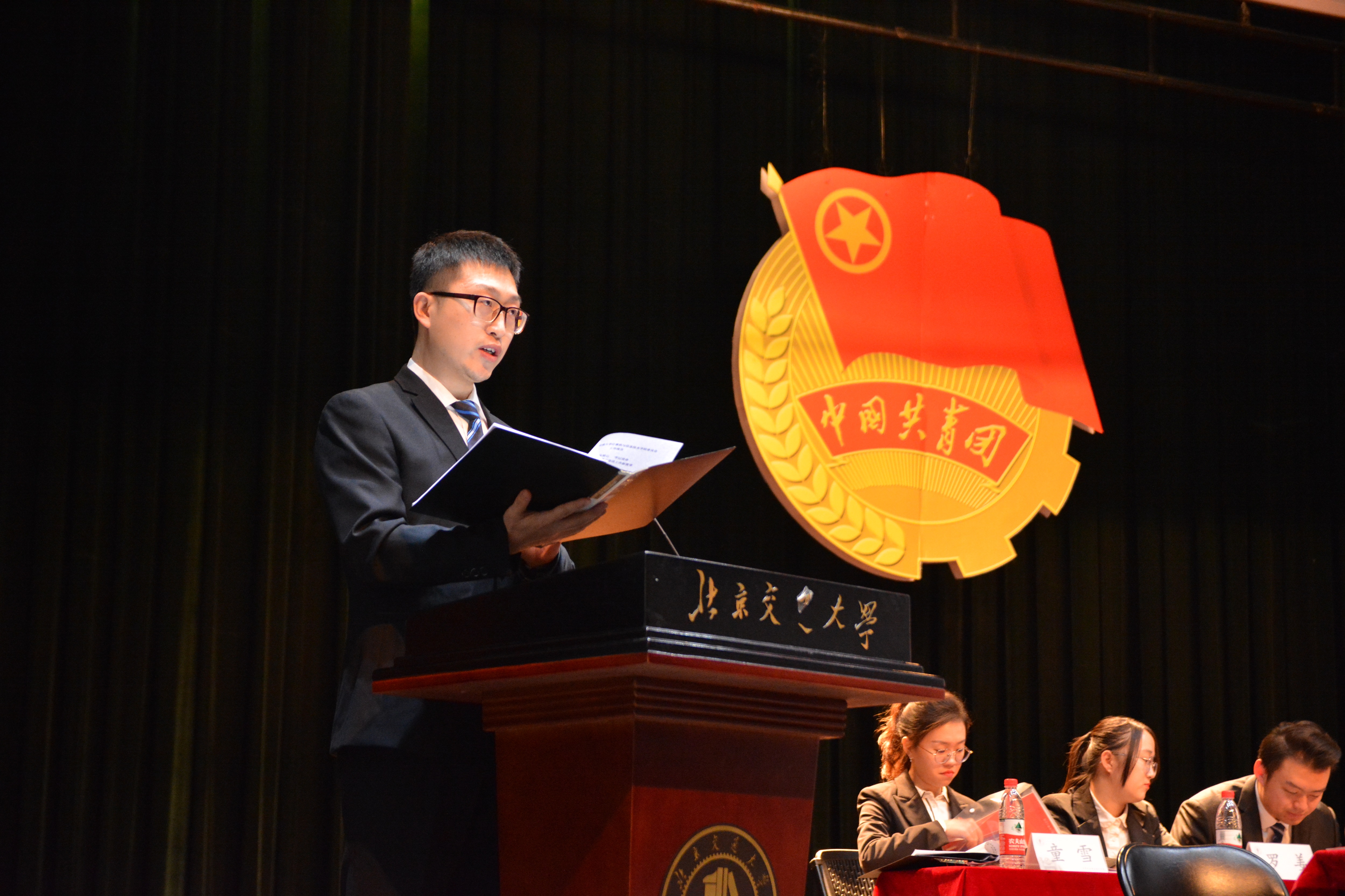 大会主席团常务主席原晓敏同志代表共青团北京交通大学计算机与信息技术学院委员会向大会作了题为“不忘初心、牢记使命,谱写新时代共青团工作新篇章”的工作报告。报告回顾了过去三年的团学工作,指出三年来学院共青团组织在思想引领、组织建设、志愿实践、创新创业、学院文化等多方面工作都取得了瞩目的成果,开创了学院共青团事业的新局面。报告对共青团今后一个时期的工作进行了部署和展望。报告指出,未来一个时期,p站共青团工作将紧密结合共青团工作的新形势、新任务、新要求,贯彻党的群团工作会议精神,服务学校改革发展大局,创新工作思路,围绕一个根本任务,聚焦两大阵地,筑牢三大基石,团结带领全院广大青年不忘初心,牢记使命,不断推进共青团工作的科学化、系统化、精细化,促进团员青年全面成长成才。