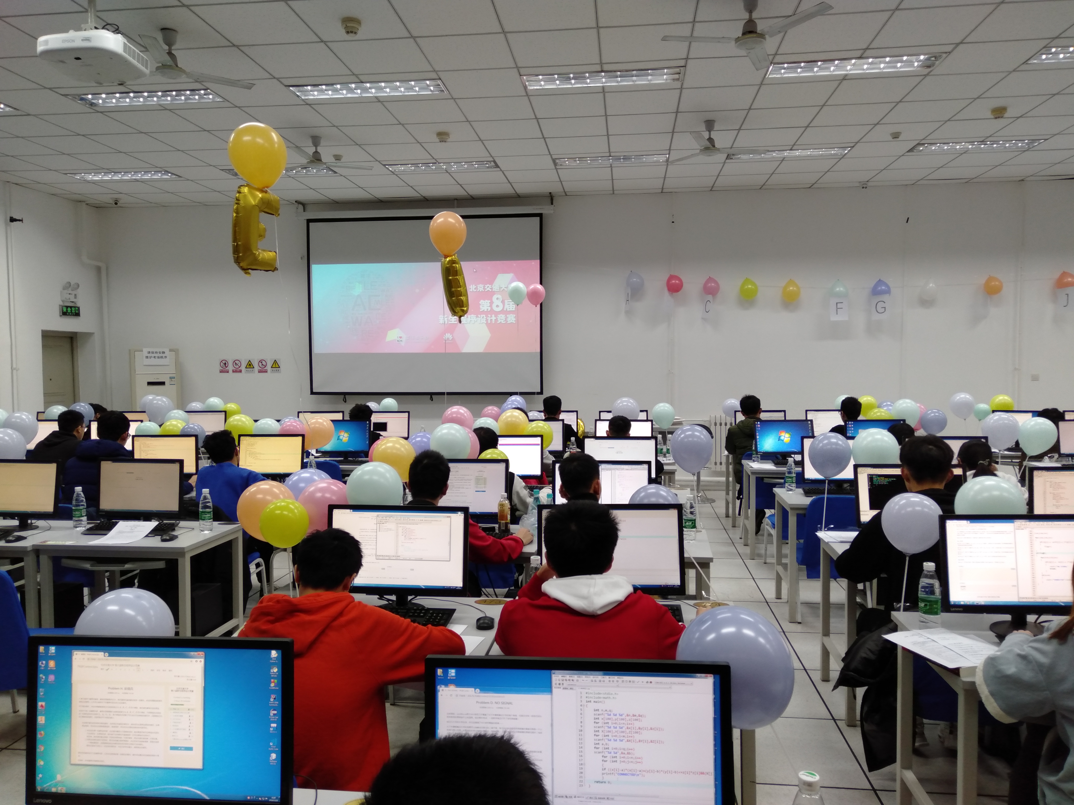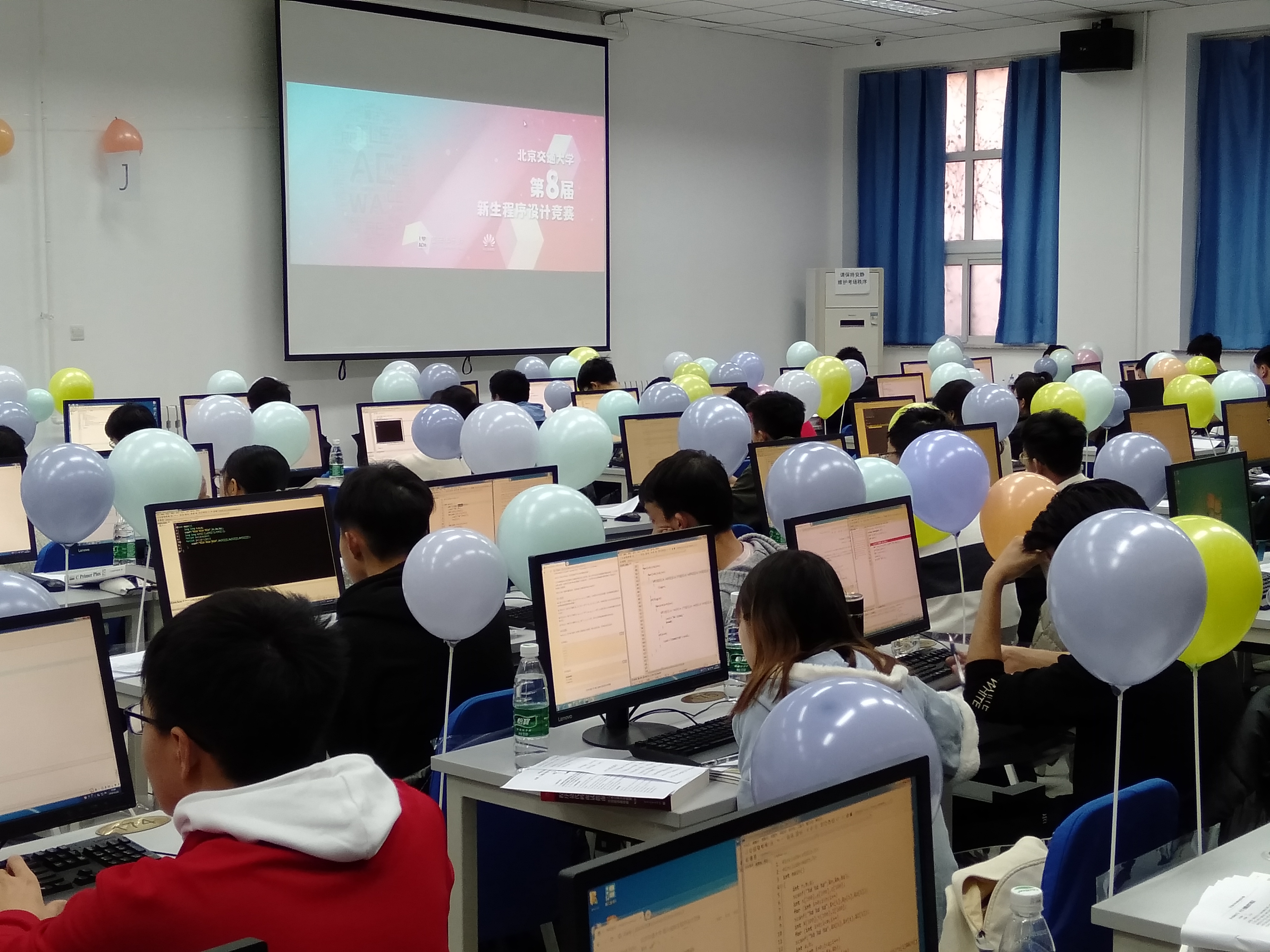 2019年12月22日,由北京交通大学新生程序设计竞赛组委会主办、计算机与信息技术学院承办的我校第八届新生程序设计竞赛现场赛正式拉开帷幕,本次比赛面向全校低年级同学,包括计算机专业19级和非计算机专业18、19级本科学生,在计算机基础教学基地东校区机房举办。