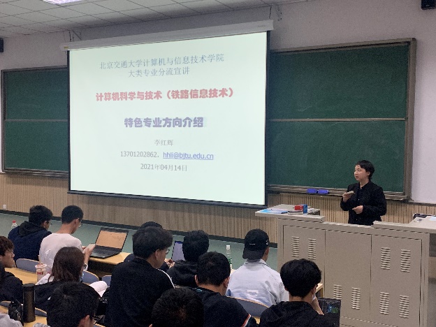 计算机科学与技术专业责任教授黄雅平、计算机科学与技术(铁路信息技术)专业责任教授李红辉、物联网工程专业责任教授岑翼刚、人工智能专业责任教授周雪忠、信息安全专业责任教授刘吉强依次介绍了p站6个本科专业的专业发展前景、专业优势和特色、实验环境、师资队伍、学生深造和就业、课程体系等。