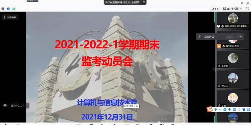 2021年12月31日下午17:00,p站通过腾讯会议线上召开2021-2022-1学期期末考试监考动员会,会议由教学副院长熊轲主持,八十多名教师参加了会议。