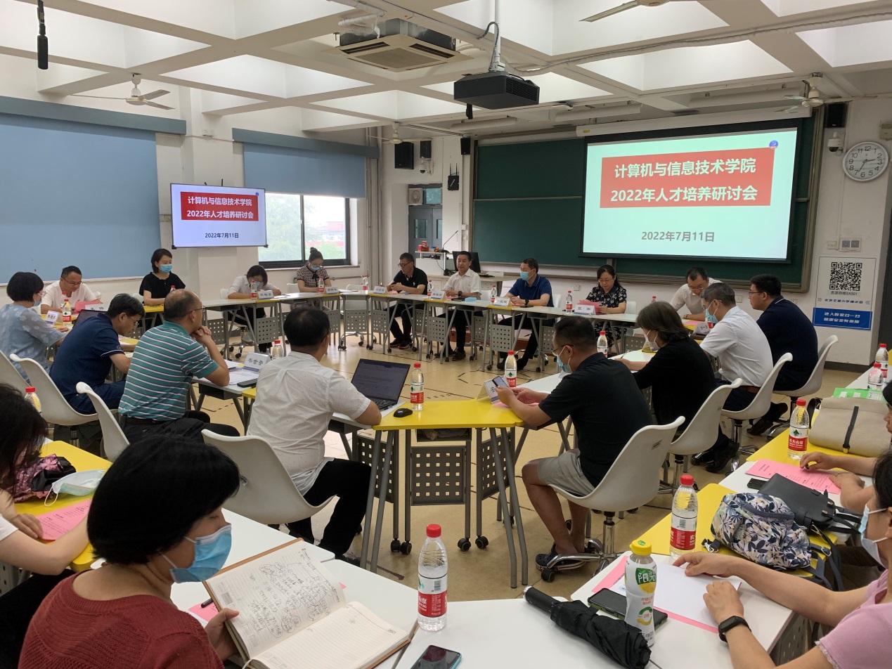 计算机与信息技术学院于7月11日下午在思源西楼501智慧教室召开了2022年人才培养工作会议。北京交通大学党委常委、副校长余祖俊、本科生院副院长张华、研究生院副院长刘世峰、研工部副部长郭祎华、学校心理素质教育中心主任耿梅芳、就业与创业指导中心副主任梁英、发展规划与学科建设处副处长宋飞、校团委副书记任一豪、对外联络合作处副处长陈磊受邀参加了会议。p站全体院领导、专业责任教授、二级机构教学主任、教学科、研究生科、团委和学院教师代表参加了会议。会议由p站院长蔡伯根主持。