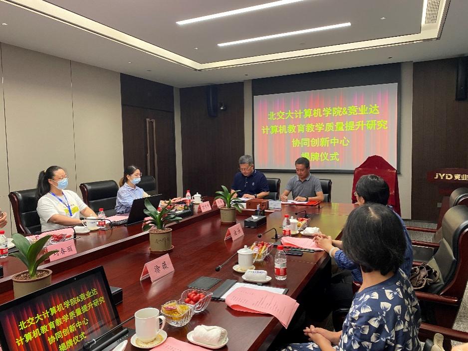 2022年8月12日上午,计算机与信息技术学院与竞业达数时代研究院在竞业达大厦第一会议室举行了计算机教育教学质量提升产学协同育人合作协议签约。竞业达董事长钱瑞、副总裁曹伟、数时代研究院院长张虹波,北京交通大学计算机与信息技术学院院长蔡伯根、副院长熊轲、专业责任教授黄雅平、校级名师于双元、督导组执行组长徐薇、工程系副主任黄华、人工智能专业执行负责人诸强、教学科时晓艳等出席了会议。会议由竞业达战略合作发展中心刘杜娟主持,蔡伯根院长和钱瑞董事长双方交换签署了合作协议并举行了揭牌仪式。