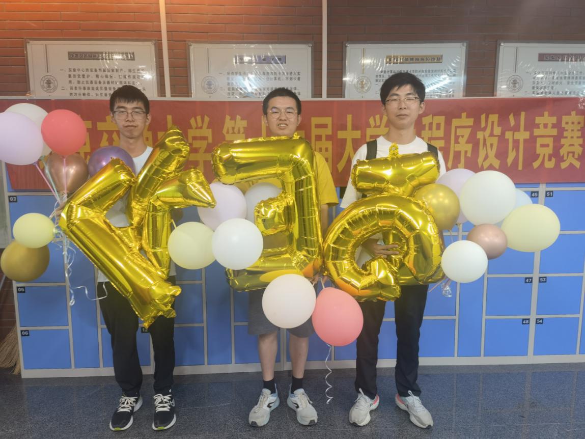 选手风采:左起依次为亚军郭昱哲(计算机22级)、冠军俞贤皓(软件21级)、季军金恒柘(计算机21级)