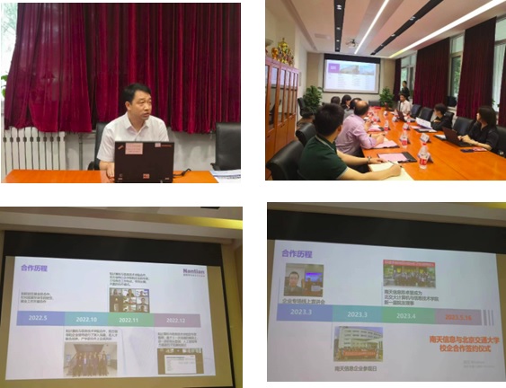 念桂林介绍了南天信息的相关情况,业务介绍及行业现状,学院已开展的合作内容,特别肯定了学院对于合作的支持。合作回顾历程,双方最早的合作可追溯到90年代,从2022年5月开始进行了多次多样的交流合作,到今天的签约仅用了1年的时间。据统计已在南天工作的校友仅北京区域都有80多人。