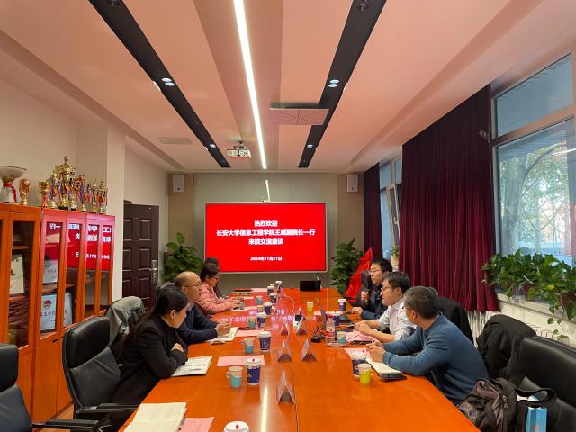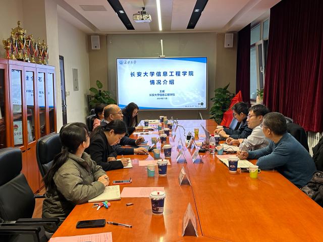 11月22日上午,长安大学信息工程学院副院长王威、软件工程系主任荆树旭、计算机系副主任马峻岩一行3人到访p站 开展调研。