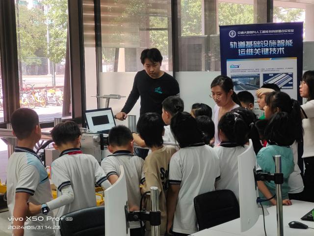 "AI+"是人工智能社会发展的大趋势。5月26日,东校区实验中心,p站熊轲教授带来“走进AI+”科普讲座,科普基地将科研成果“面向高铁轨道巡检的视觉感知”融入青少年“AI+”探索实践活动中,让同学们在“AI+轨道运维”探索和畅游。