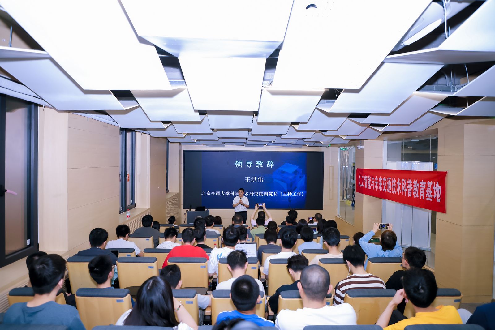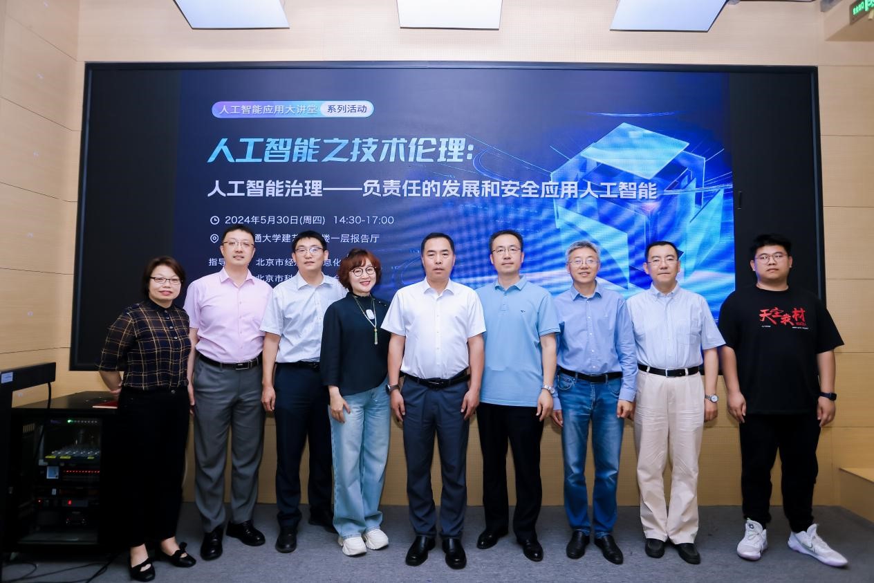 5月30日,在北京市经济和信息化局的指导下,北京市科学技术协会的支持下,由北京软件和信息服务业协会主办,北京交通大学人工智能与未来交通技术科普教育基地和中国软件行业协会智能应用分会共同协办的首期“人工智能应用大讲堂”系列活动暨开班仪式在北京交通大学成功召开。活动吸引了100余位来自高校、科研机构、人工智能相关企业的代表和热衷于人工智能学习的高校学生的现场踊跃参与,以及1102位收看线上直播的观众。北京交通大学科学技术研究院副院长王洪伟致辞,p站 任爽副教授做《人工智能与数据安全技术》主题报告。