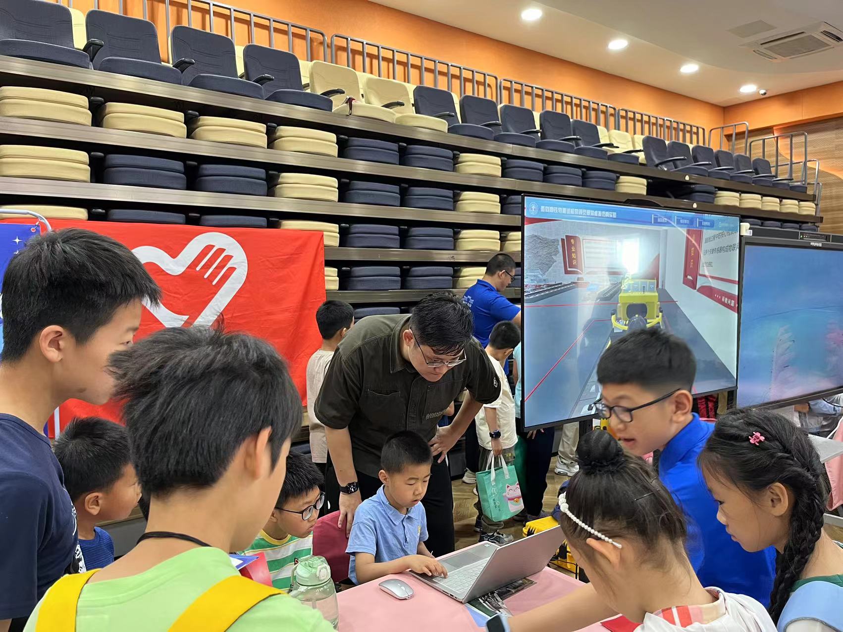 6月1日儿童节当天,科普教育基地教师和大学生志愿者赴丰台区少年宫,携手丰台科协,和北理工、北邮、北信科等大学实验室一同开展了“智慧未来,童心探秘”的“6·1HIGH翻天”系列活动。科普基地展示了“AI+轨道运维”项目。这个面向大学生的实验项目,让中小学的孩子们初步了解了高铁轨道智能运维中涉及到的传感器、巡检系统、AI病害识别等科学知识,让孩子们沉浸在虚拟工作场景中,流连忘返。项目与少年宫科创项目紧密相连,开阔了孩子们的视野,萌发了创新和科技探索的种子。