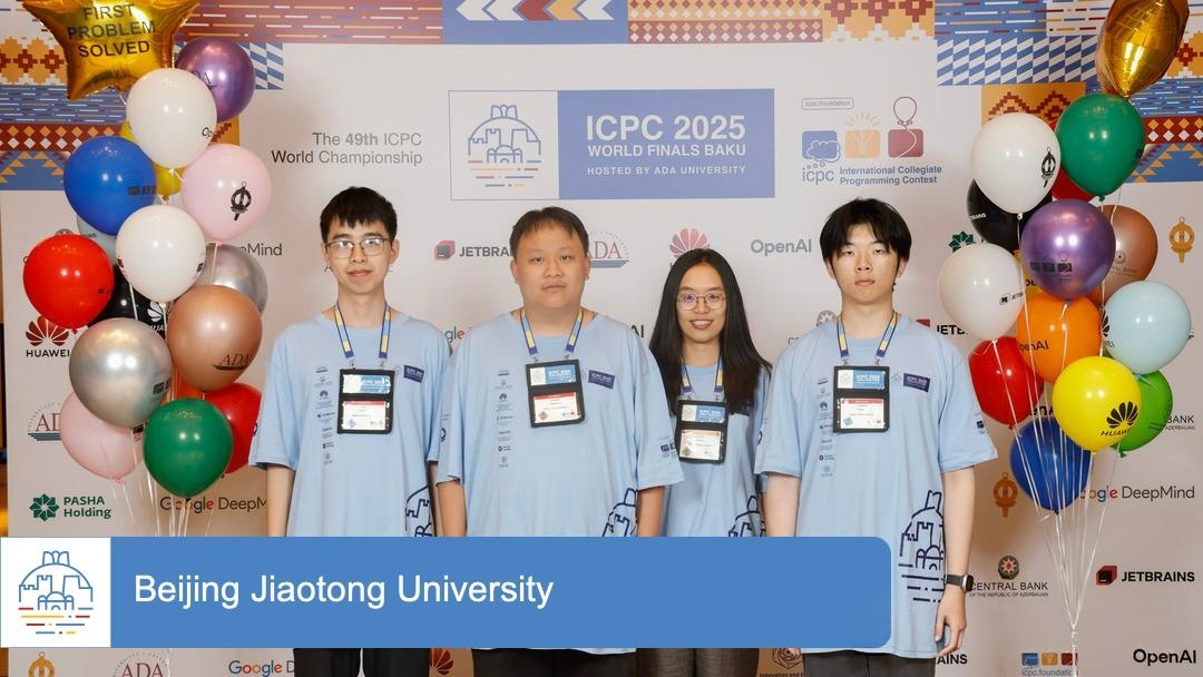 三年来,他利用25个周末奔赴全国各地参加比赛,共获得国家级奖项20项,其中一等奖15项,累计斩获金牌12枚。2024年,他代表学校参加被誉为“计算机领域奥林匹克”的第48届ICPC国际大学生程序设计竞赛全球总决赛,最终荣获全球第七名的优异成绩。2025年,他以卓越的表现刷新纪录,以世界第三、国内第一的排名勇夺金牌,不仅实现个人成绩的重大突破,更让北京交通大学成为ICPC自1996年进入中国内地三十年来,国内第五所获得金奖的高校,创造了学校在该项赛事中的历史最佳成绩。
