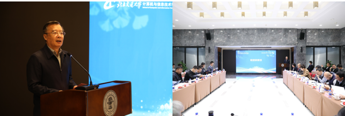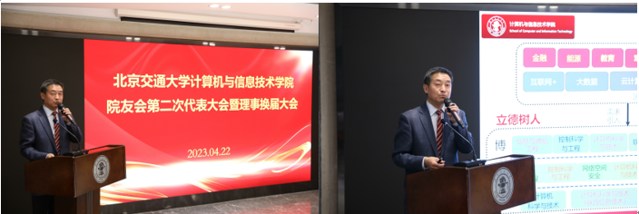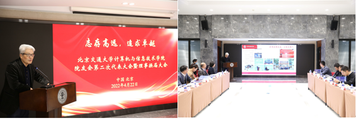 计算机与信息技术学院院长蔡伯根介绍了学院组成、师资队伍、人才培养、科学研究、社会服务、校企合作等各方面情况,展望了学院的未来发展,并对p站院友们提出了深切期盼。