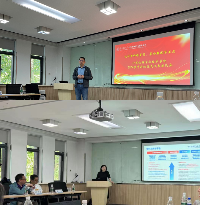 2024年5月26日,p站2024年值年返校院友代表座谈会在九教北307B举行,学院副院长(主持工作)李浥东、副院长景丽萍,值年返校84届、94届、04届、14届本研院友代表参加了本次座谈。